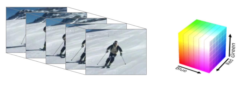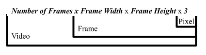 Putting it all together we can represent a video as a large matrix of the following dimensions (Note the 3 comes from the 3 components of RGB):